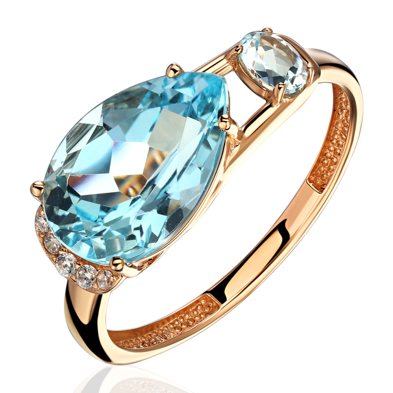 Кольцо из красного золота 585 пробы с топазом и фианитами – эффектное украшение, которое подчеркнет вашу уникальность и стиль. Основной камень — голубой топаз — символизирует спокойствие, внутреннюю гармонию и ясность ума. Он считается камнем, приносящим удачу и способным усиливать позитивное настроение. В сочетании с нежными фианитами, придающими изделию искрящуюся роскошь, кольцо станет ярким акцентом в любой коллекции украшений. Коллекция "New colour" предназначена для тех, кто ценит современность и оригинальность в ювелирных изделиях.