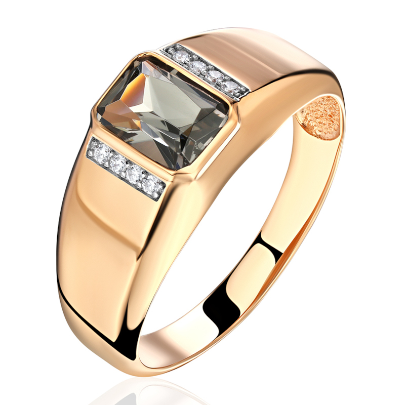 Кольцо из красного золота 585 пробы с кварцем и фианитами 01К2115364Р-1
