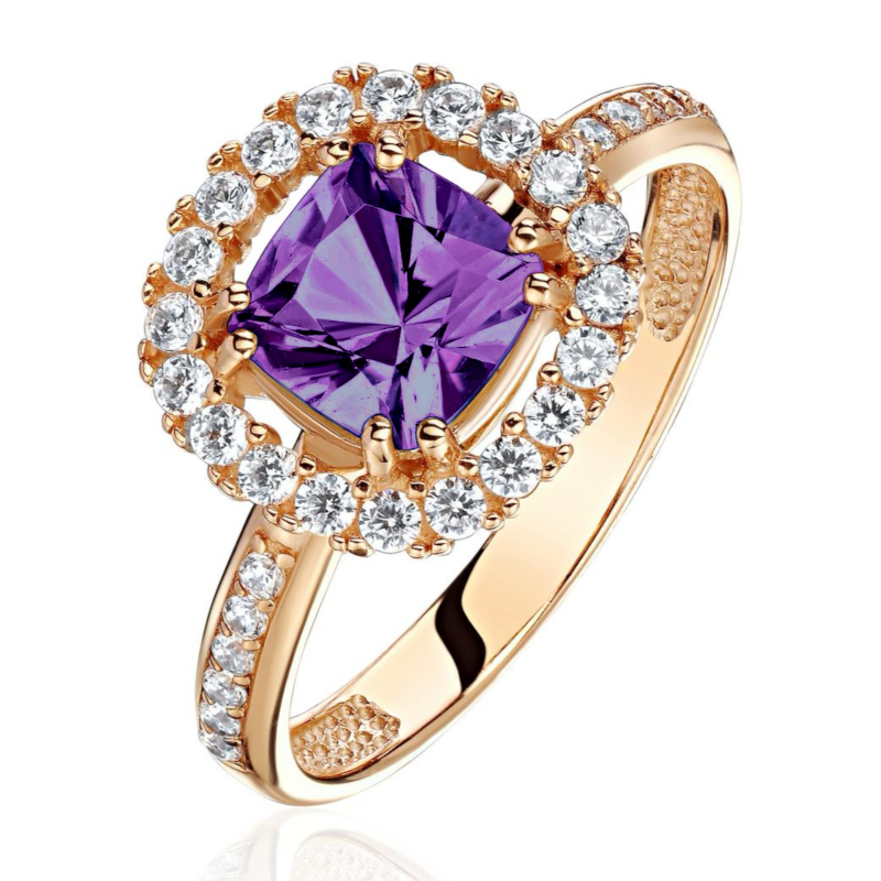 Кольцо из красного золота 585 пробы с аметистом и фианитами 01К3115438-5