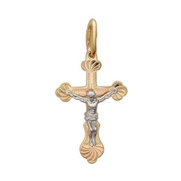 Крест нательный из двух цветов золота 375 пробы без вставок 01Р760591S