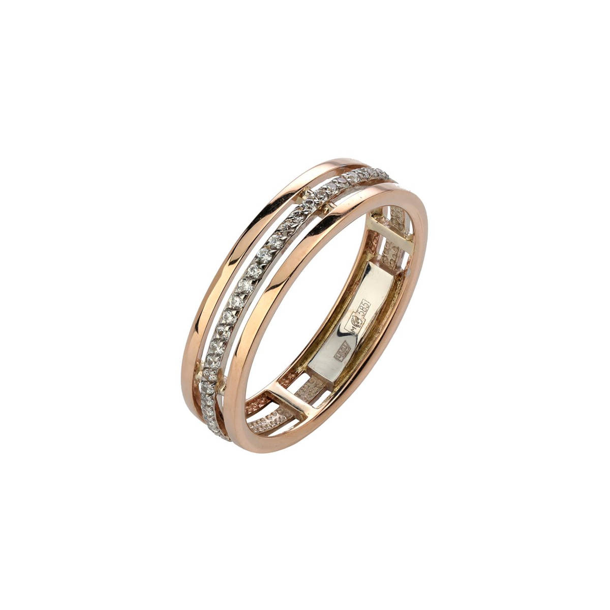 Кольцо из двух цветов золота 585 пробы с фианитами. Идеальное сочетание красного и белого цветов металла. Сегодня сочетание золота и фианита уже считается классикой. Роскошный блеск фианита привлекает взгляды, а оригинальный дизайн вносит в образ нотку элегантности. Самые смелые решения дизайнеров воплощаются в современных украшениях.
