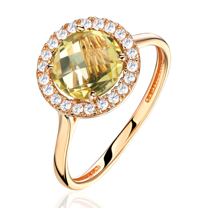 Кольцо из красного золота 585 пробы с кварцем и фианитами 01К3115411-3