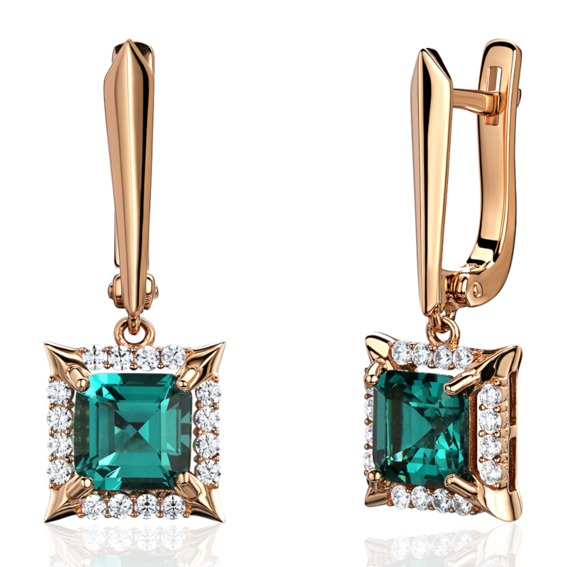 Серьги из красного золота 585 пробы с наноситал турмалином и фианитами 01С2115422-4