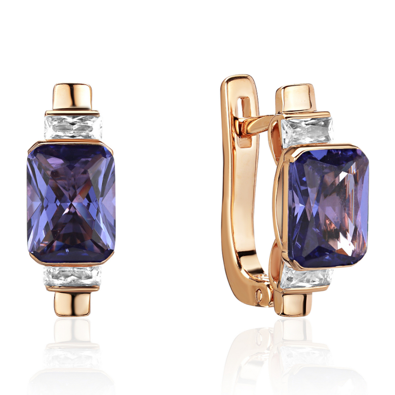 Серьги из красного золота 585 пробы с наноситал танзанитом и фианитами 01С2115432-2