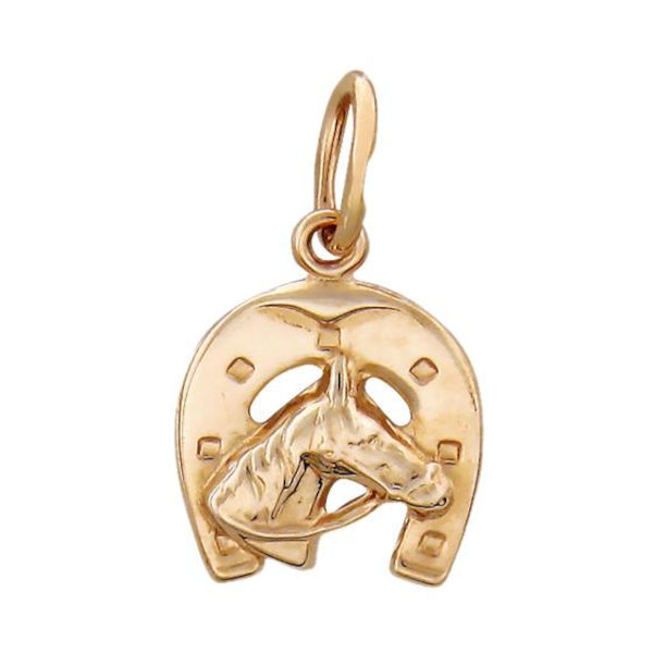 Подвеска в виде подковы и лошади из красного золота 375 пробы без вставок 01П010403S