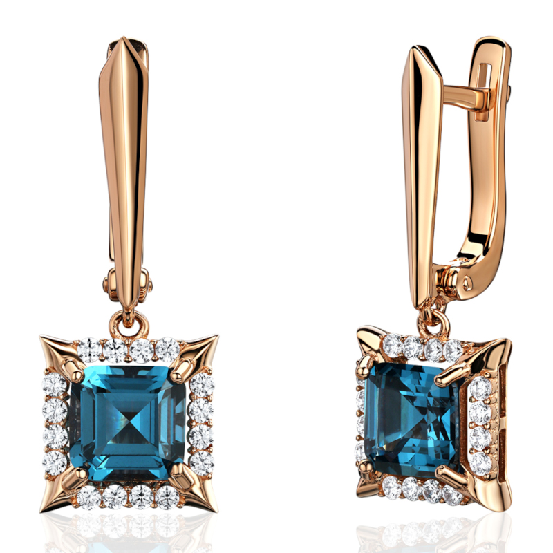 Серьги из красного золота 585 пробы с наноситал топазом и фианитами 01С2115422-2