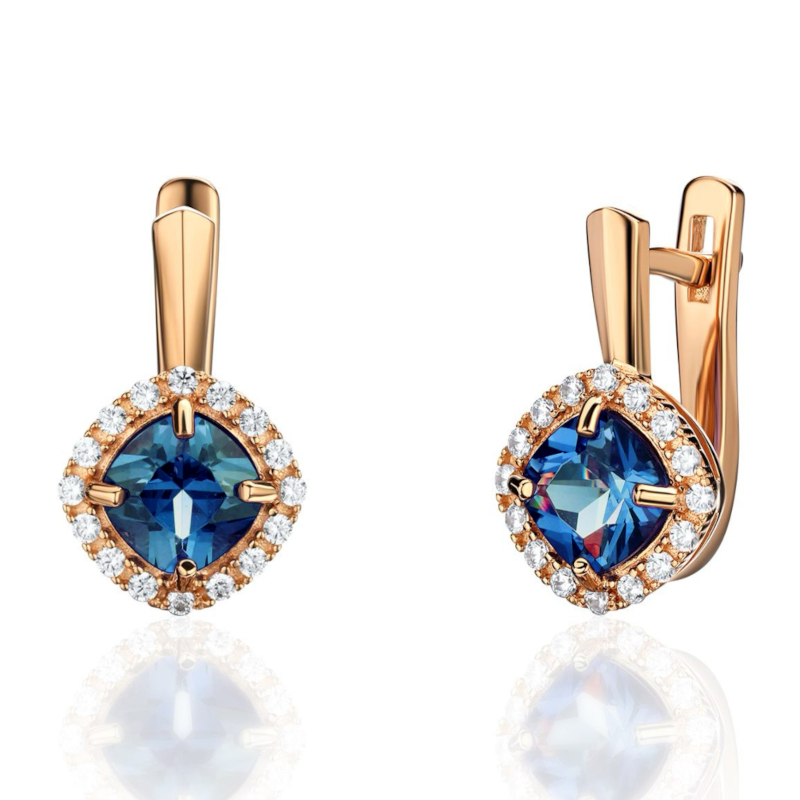 Серьги из красного золота 585 пробы с наноситал топазами и фианитами 01С2115434-1