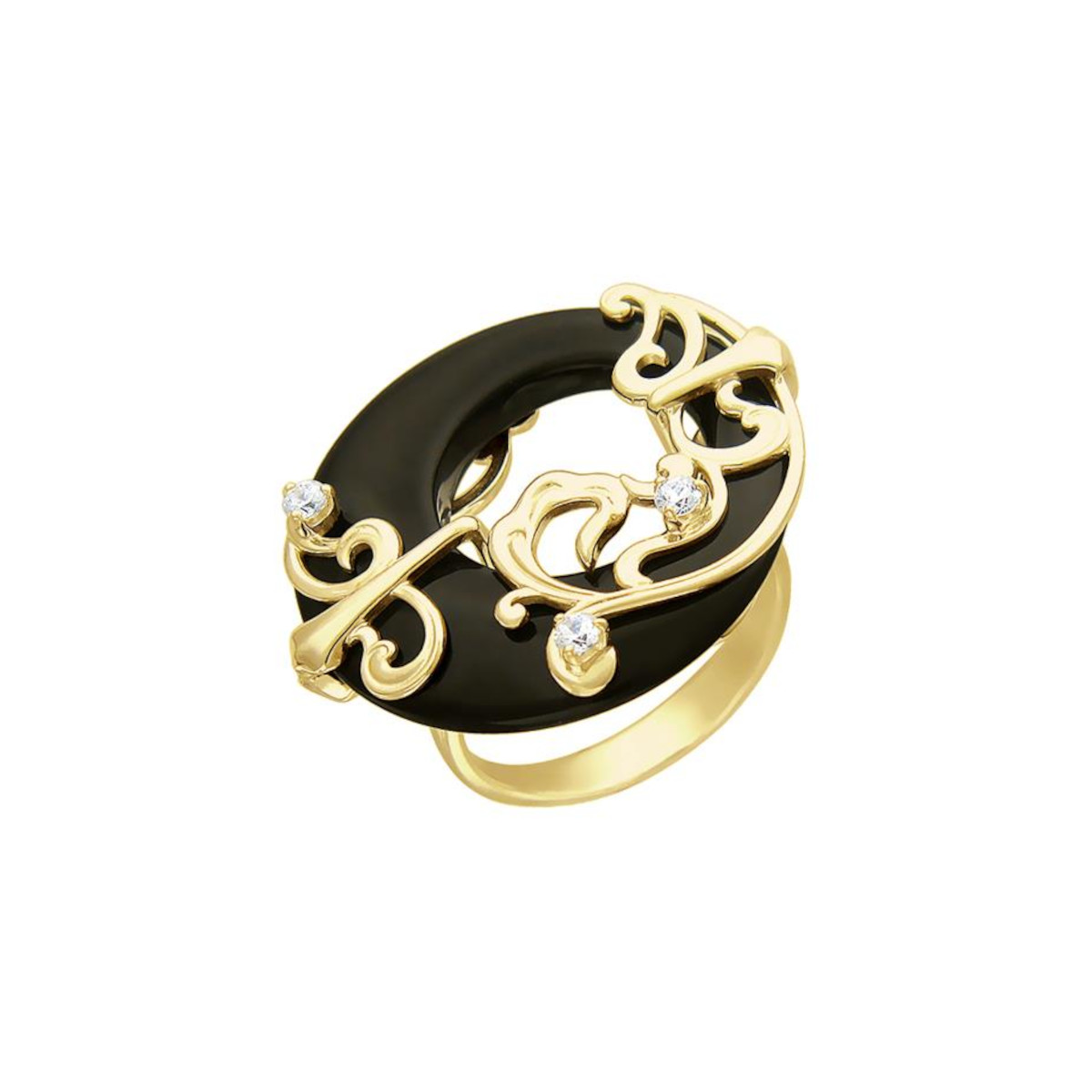 Кольцо из желтого золота 585 пробы с агатом и фианитами 01К436131-1