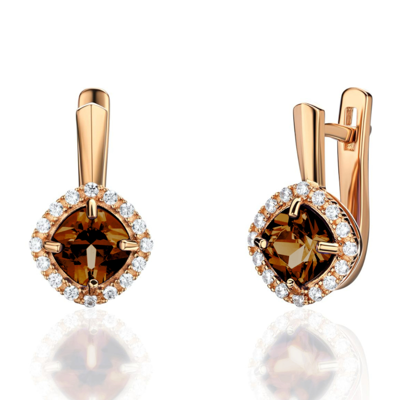 Серьги из красного золота 585 пробы с раух-топазами и фианитами 01С3115434-4