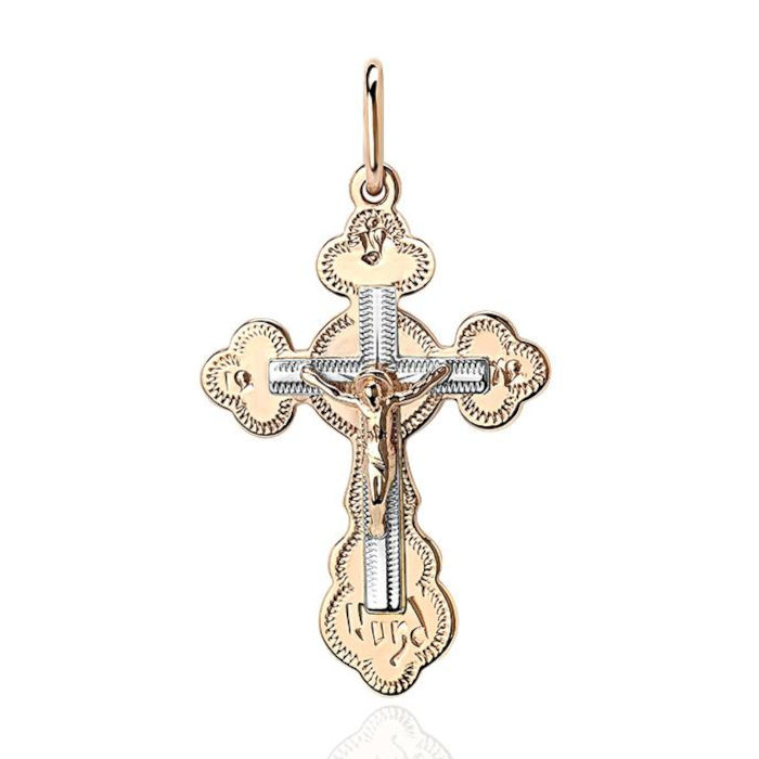 Крест нательный из двух цветов золота 375 пробы без вставок 01Р760697S