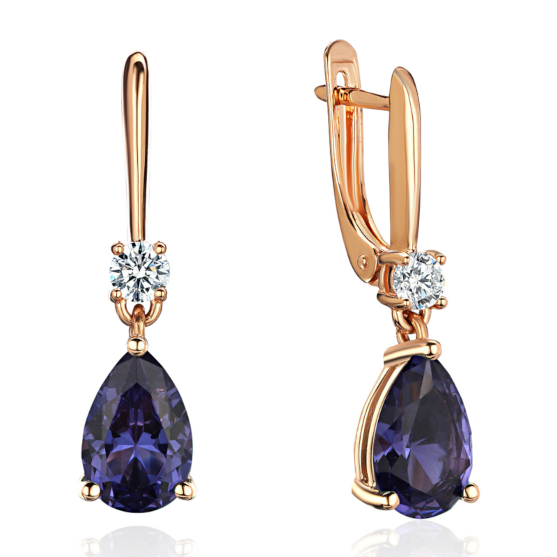 Серьги из красного золота 585 пробы с наноситал танзанитом и фианитами 01С2115337-3