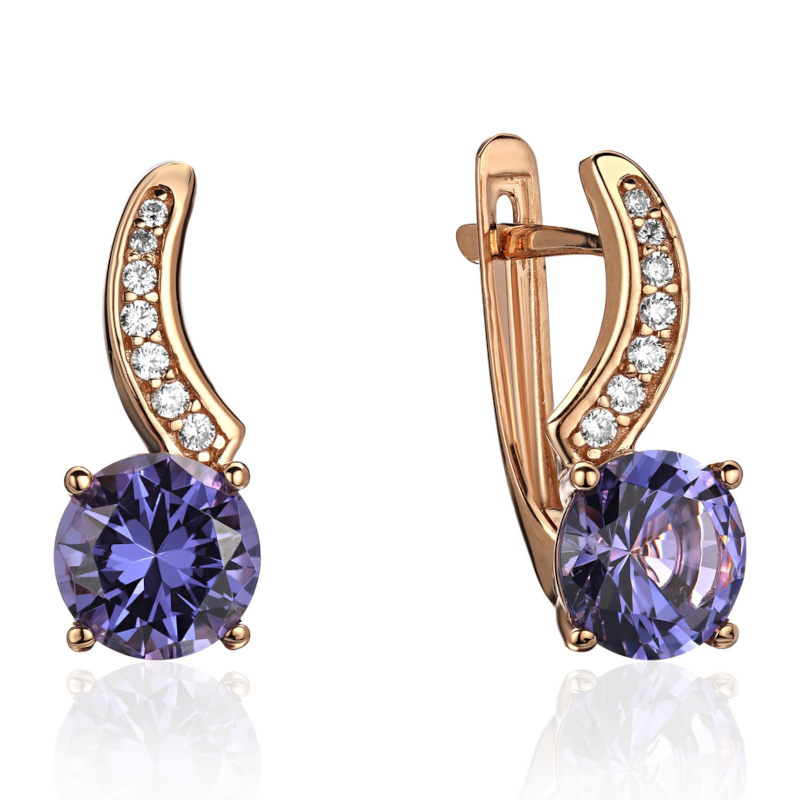 Серьги из красного золота 585 пробы с наноситал танзанитом и фианитами 01С2115345-4