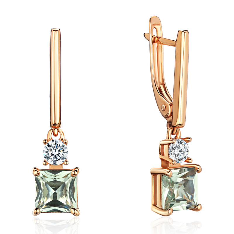 Серьги из красного золота 585 пробы с наноситал кварцем и фианитами 01С2115366-3