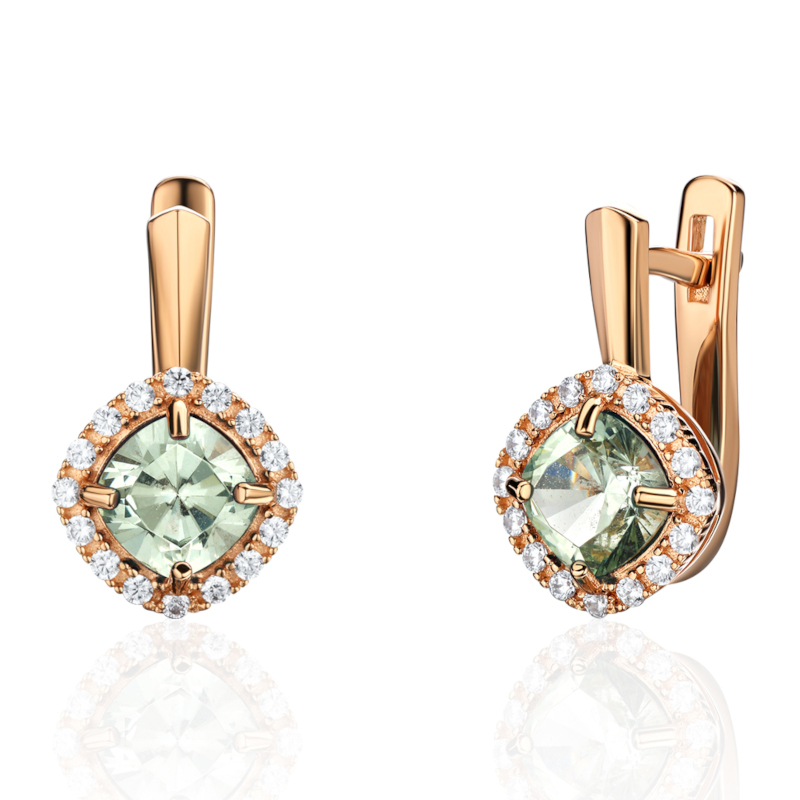 Серьги из красного золота 585 пробы с наноситал кварцем и фианитами 01С2115434-4