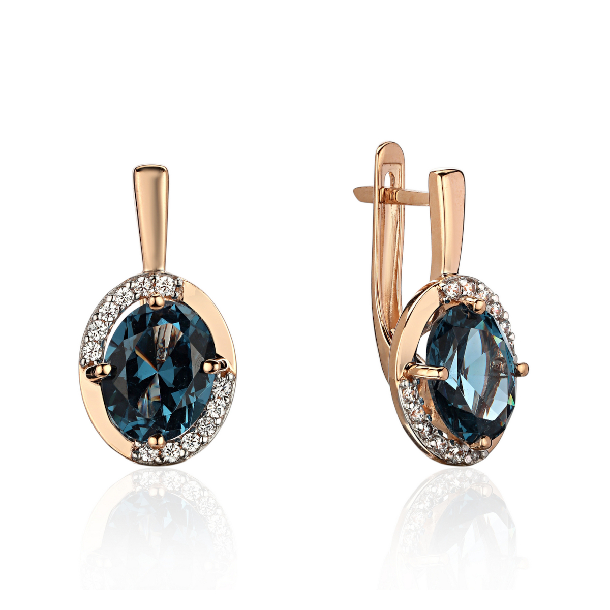 Серьги из красного золота 585 пробы с наноситал топазом и фианитами 01С2115469Р-1