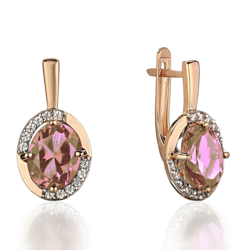 Серьги из красного золота 585 пробы с наноситал морганитом и фианитами 01С2115469Р-2