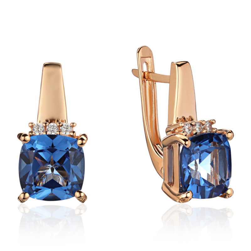 Серьги из красного золота 585 пробы с наноситал сапфиром и фианитами 01С2115472-2