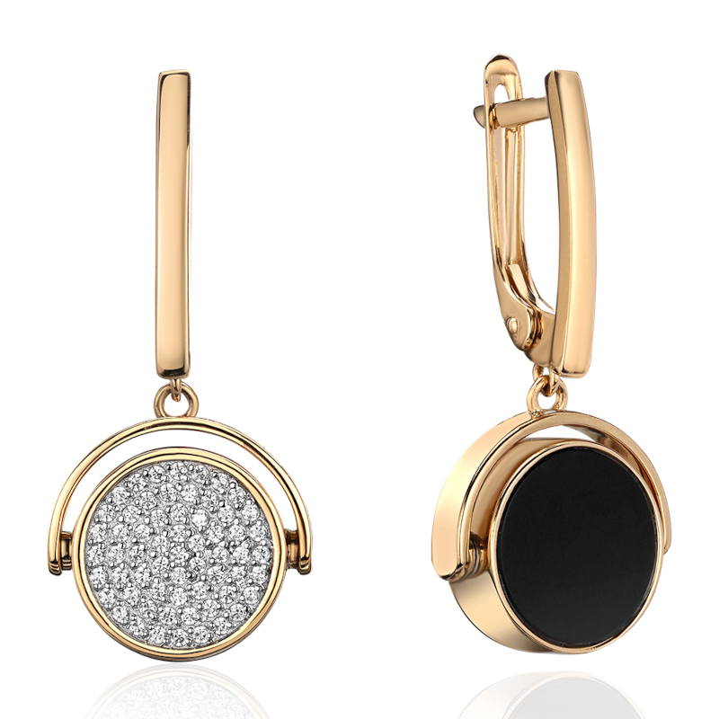 Серьги из желтого золота 585 пробы с агатами и фианитами 01С4315070-1