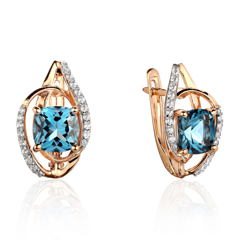 Серьги из красного золота 585 пробы с наноситал топазом и фианитами 01С2115322Р-1