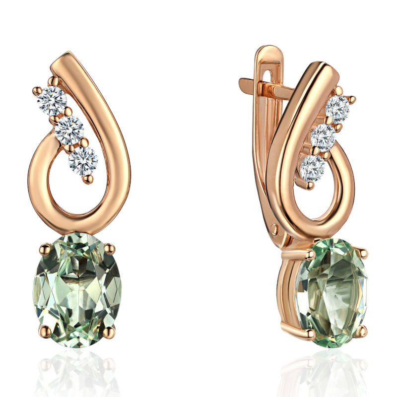 Серьги из красного золота 585 пробы с наноситал кварцем и фианитами 01С2115339-5