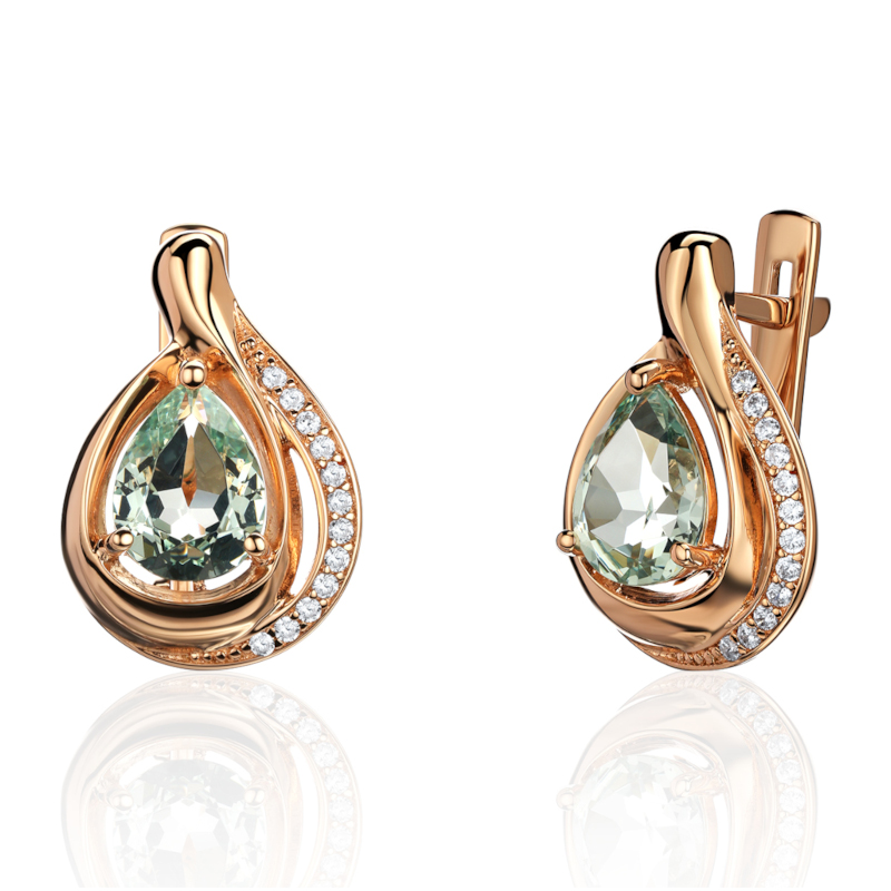 Серьги из красного золота 585 пробы с наноситал кварцем и фианитами 01С2115348-3