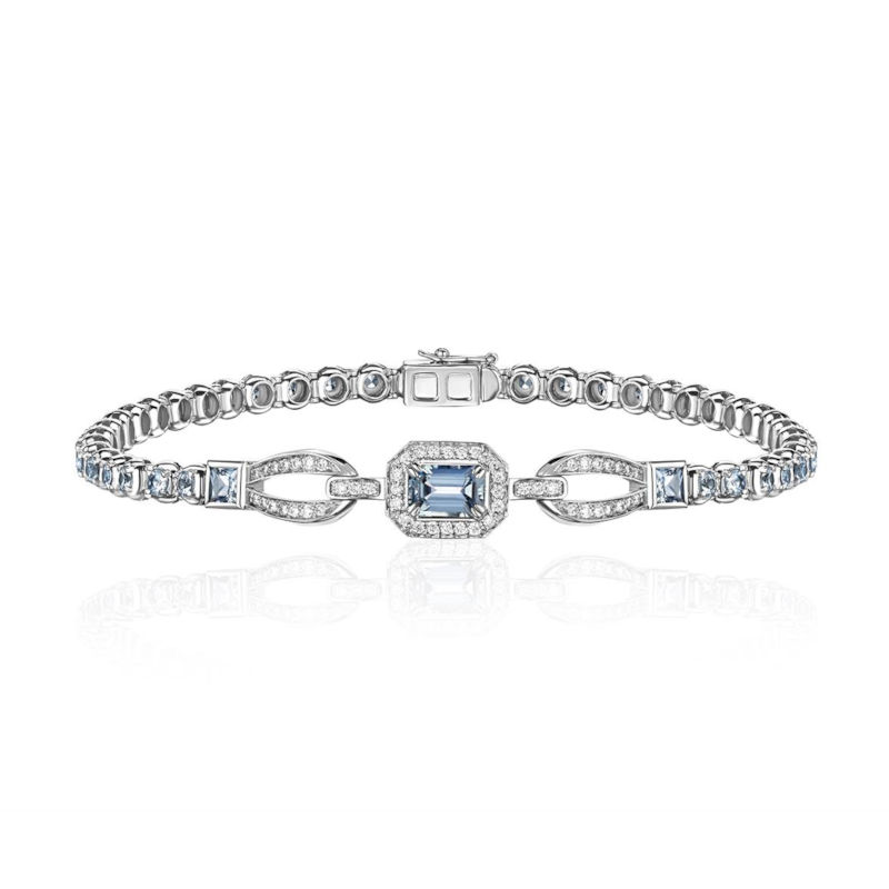 Браслет из белого золота 585 пробы с сапфирами и бриллиантами 01Б623368-7