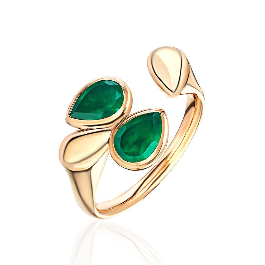 Кольцо из красного золота 585 пробы с зелеными агатами 01К4116544-1
