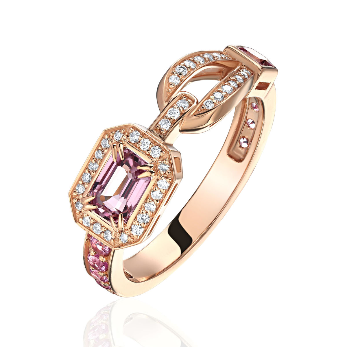 Кольцо из красного золота 585 пробы с сапфирами, турмалинами и бриллиантами 01К6116307-2