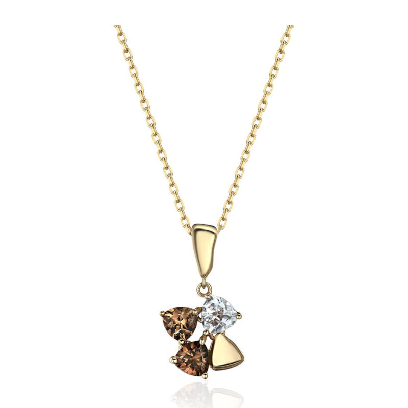 Колье из желтого золота 585 пробы с раух-топазами и топазом 01Л332383-1