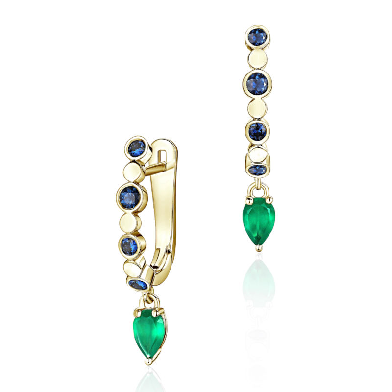 Серьги из желтого золота 585 пробы с агатами и сапфирами 01С5315452-1