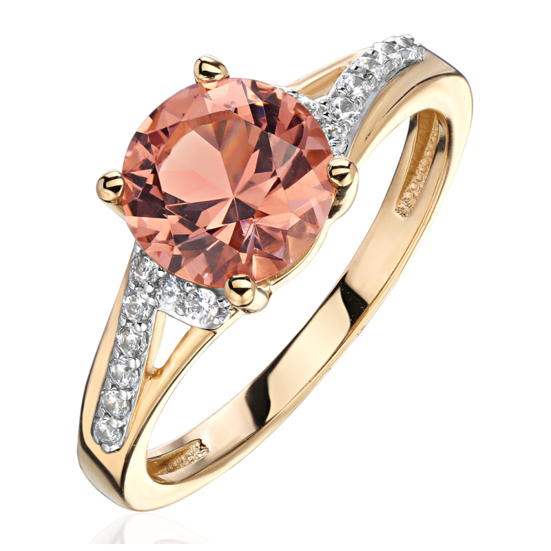Кольцо из желтого золота 585 пробы с наноситал морганитом и фианитами 01К2316467Р-1