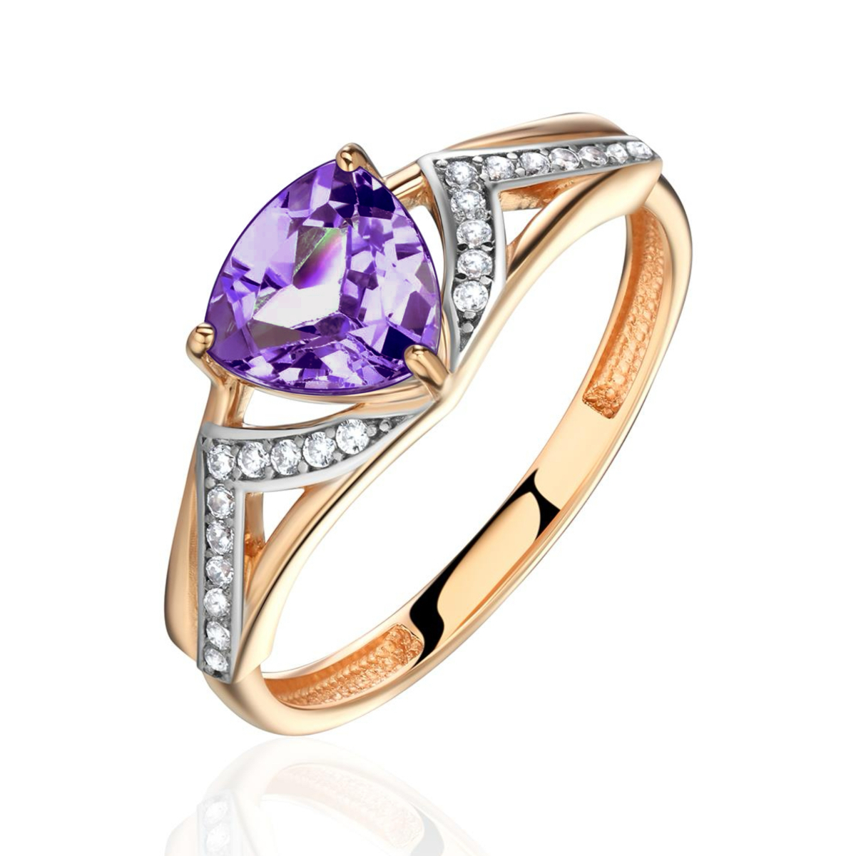 Кольцо из красного золота 585 пробы с аметистом и фианитами 01К3115369Р-2
