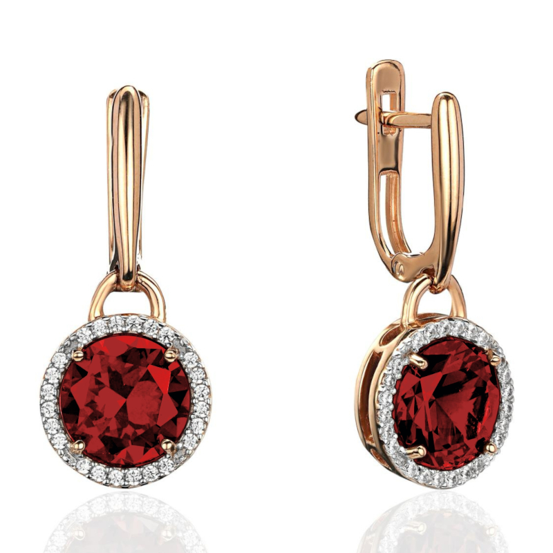 Серьги из красного золота 585 пробы с гранатами и фианитами 01С3115335-1