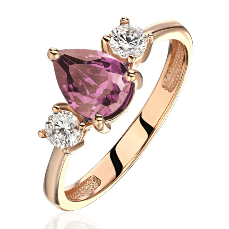 Кольцо из красного золота 585 пробы с наноситал морганитом и фианитами 01К2115337-7