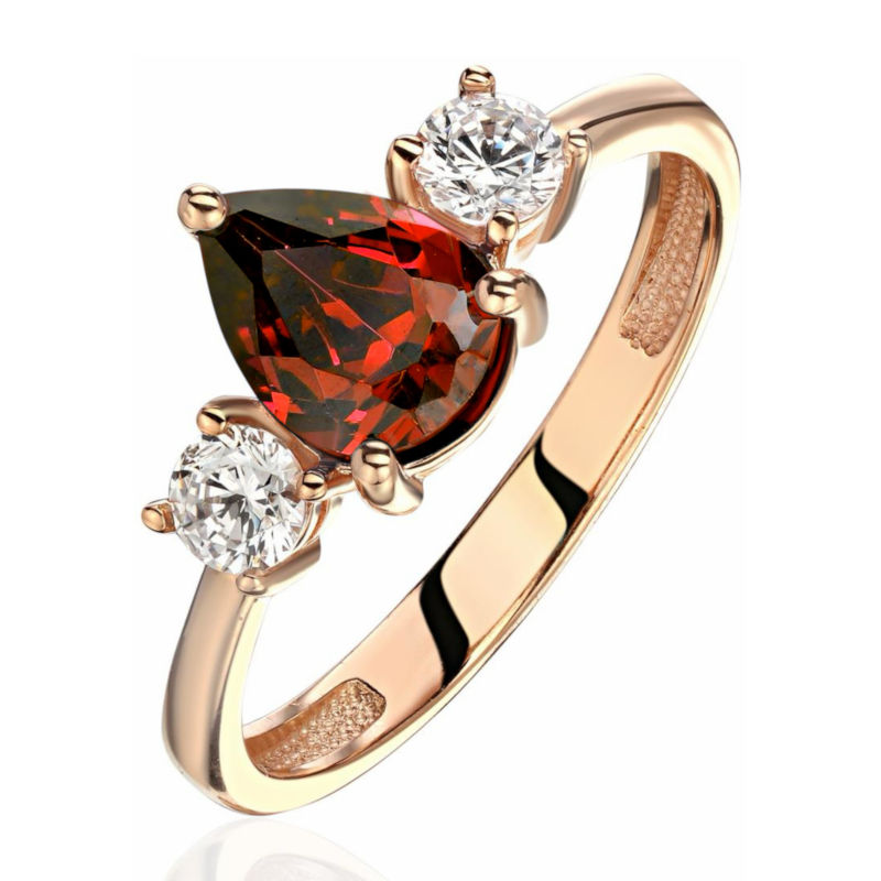 Кольцо из красного золота 585 пробы с гранатом и фианитами 01К3115337-3