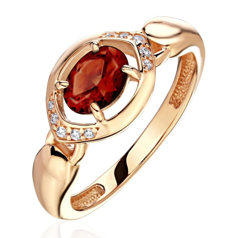 Кольцо из красного золота 585 пробы с гранатом и фианитами 01К3115350-2