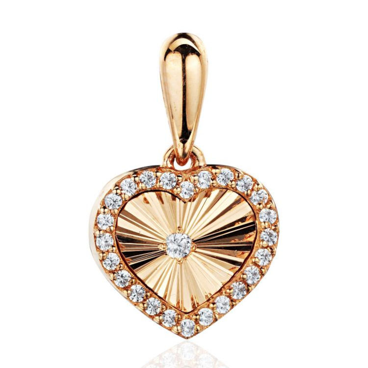 Подвеска из красного золота 585 пробы с бриллиантами 01П6115086-17 станет воплощением нежности и любви. Украшение выполнено в форме сердца и наполнено блеском камней, которые сочетаются с мягким свечением алмазной грани внутри формы, создавая изысканный и притягательный образ.