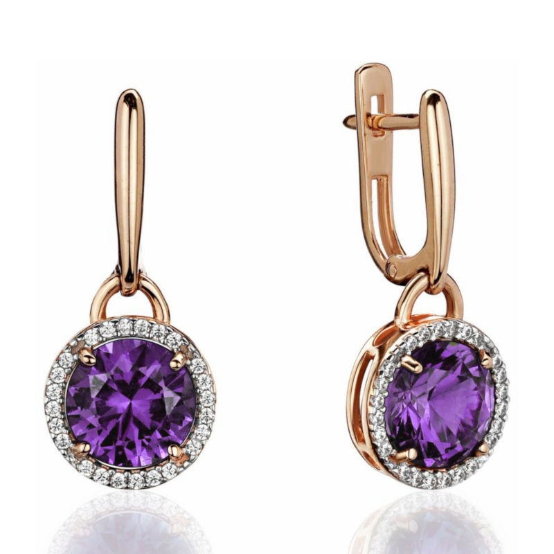 Серьги из красного золота 585 пробы с аметистами и фианитами 01С3115335-3