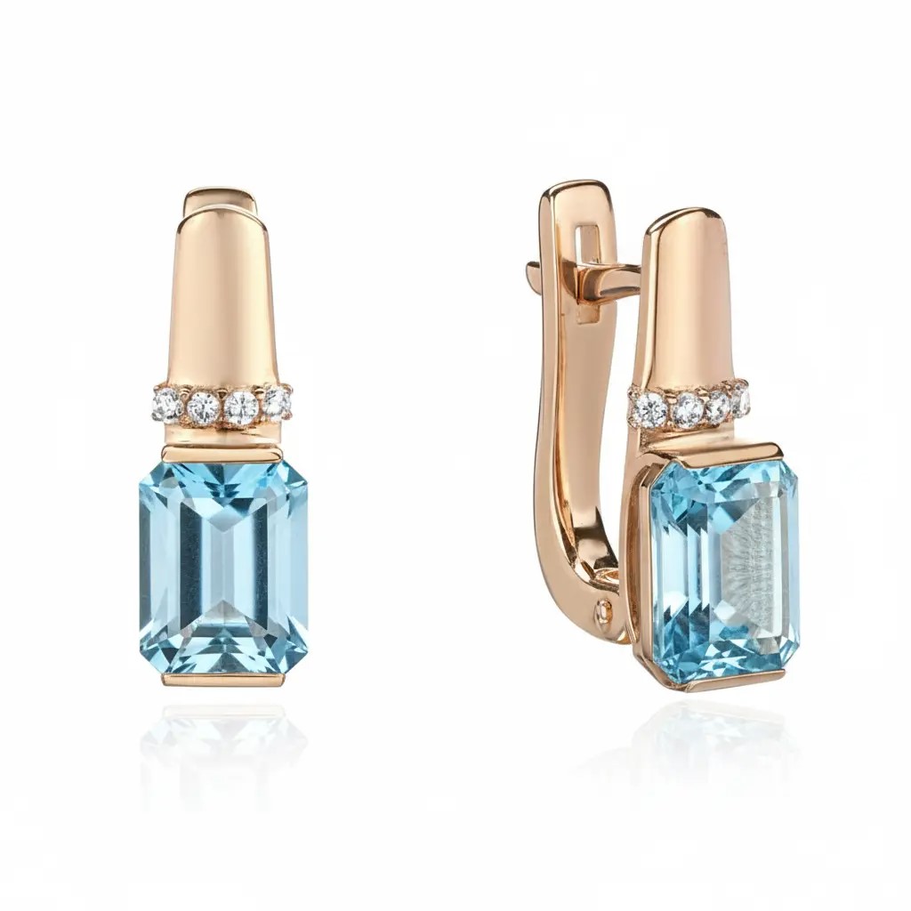 Серьги из красного золота 585 пробы с топазами и фианитами 01С3116535-1