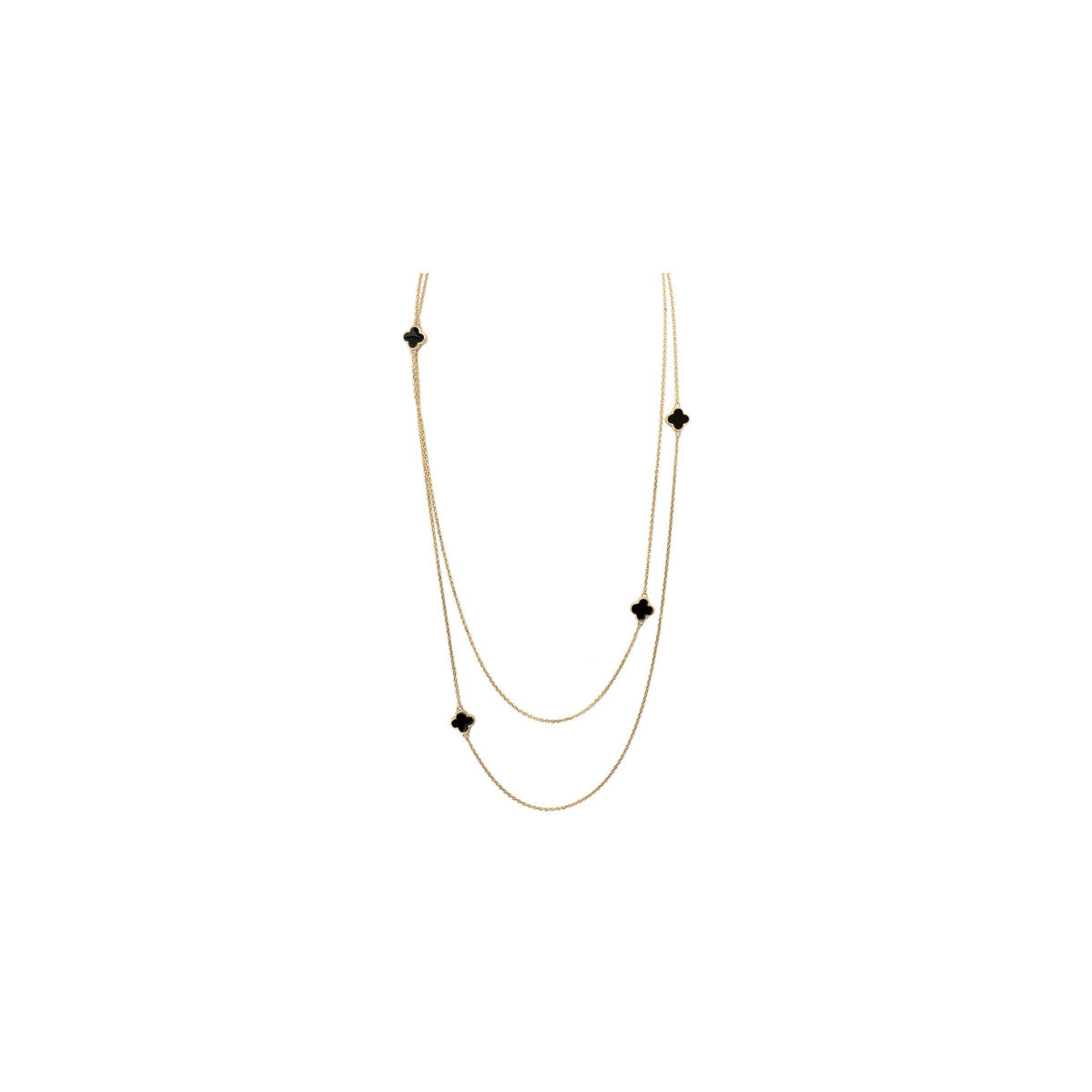 Колье из желтого золота 585 пробы с черной эмалью. Украшение из коллекции Stylish look гармонично и искусно выполнено. Вдохновение пришло от самой природы, ведь декоративные элементы напоминают четырехлистный клевер. По легенде, нашедшему такое растение, оно приносит удачу. Найдите свое украшение в коллекции Stylish look.