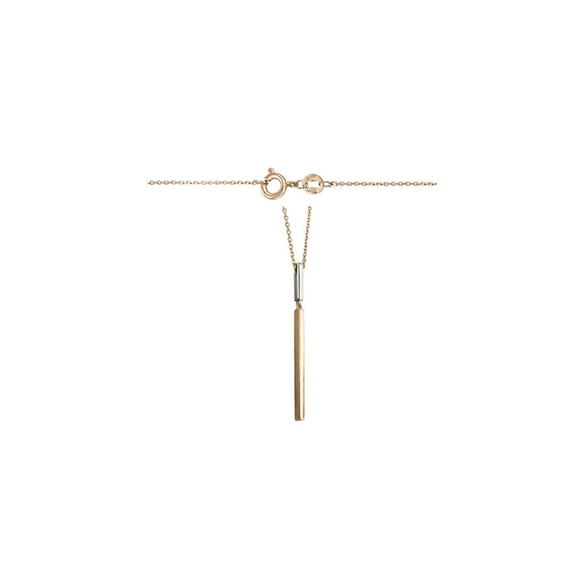 Колье из двух цветов золота 585 пробы без вставок. Колье завершит Ваш образ вне зависимости от предпочитаемого стиля. Выберите дизайн, который максимально подчеркнет Вашу индивидуальность. Тончайшая цепочка и подвеска с глянцевой поверхностью прекрасно дополнит любой образ. Идеальное сочетание желтого и белого цветов.