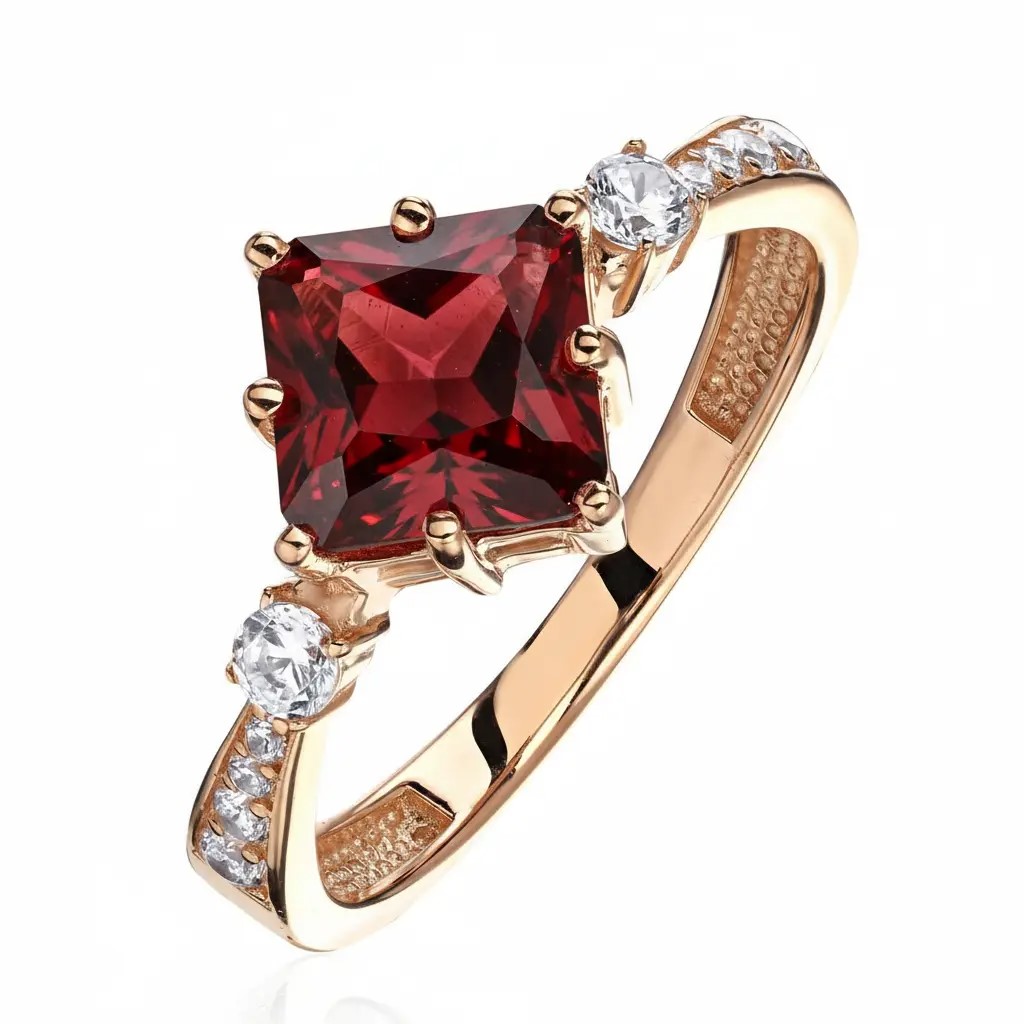 Кольцо из красного золота 585 пробы с гранатом и фианитами 01К3116560Р-1