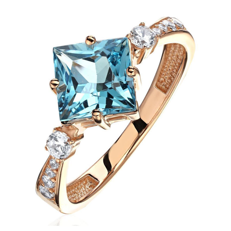 Кольцо из красного золота 585 пробы с топазом и фианитами 01К3116560Р-3