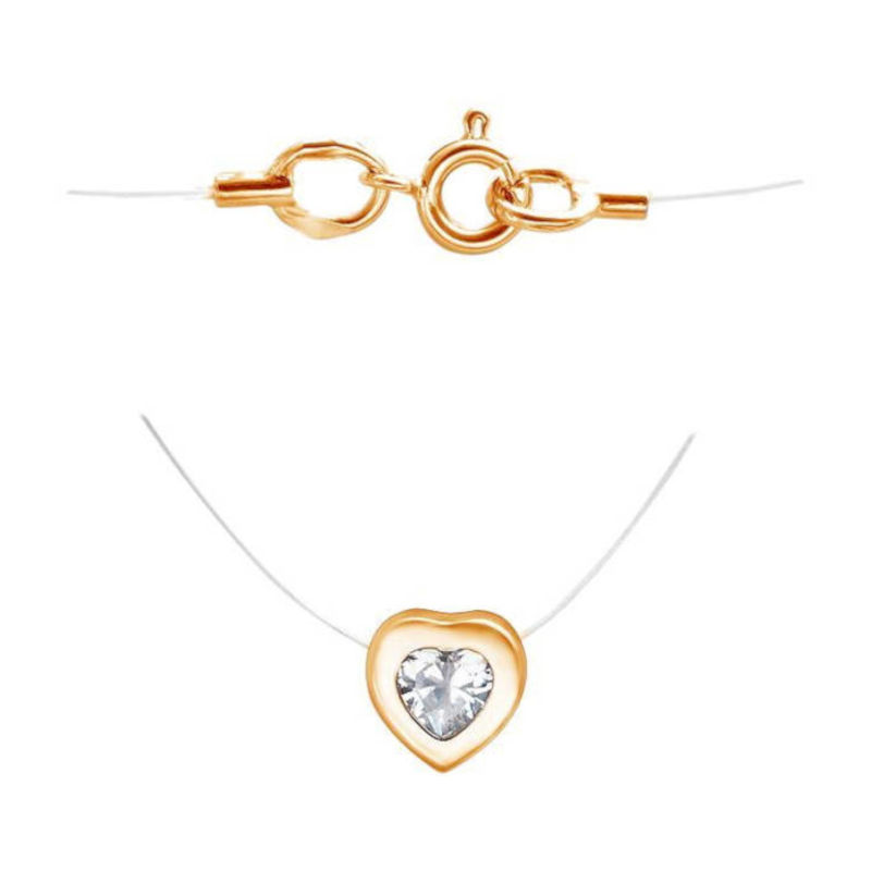 Необычное украшение – колье на леске-невидимке из красного золота 585 пробы с фианитом. Визуальное впечатление отсутствия цепочки придает особую легкость и нежность Вашему образу. Невесомая, будто парящая в воздухе подвеска смотрится оригинально и очень изящно. В украшении много воздуха, свободы. Аксессуар подчеркнет одну из самых притягательных частей - женскую ключицу и плечи.