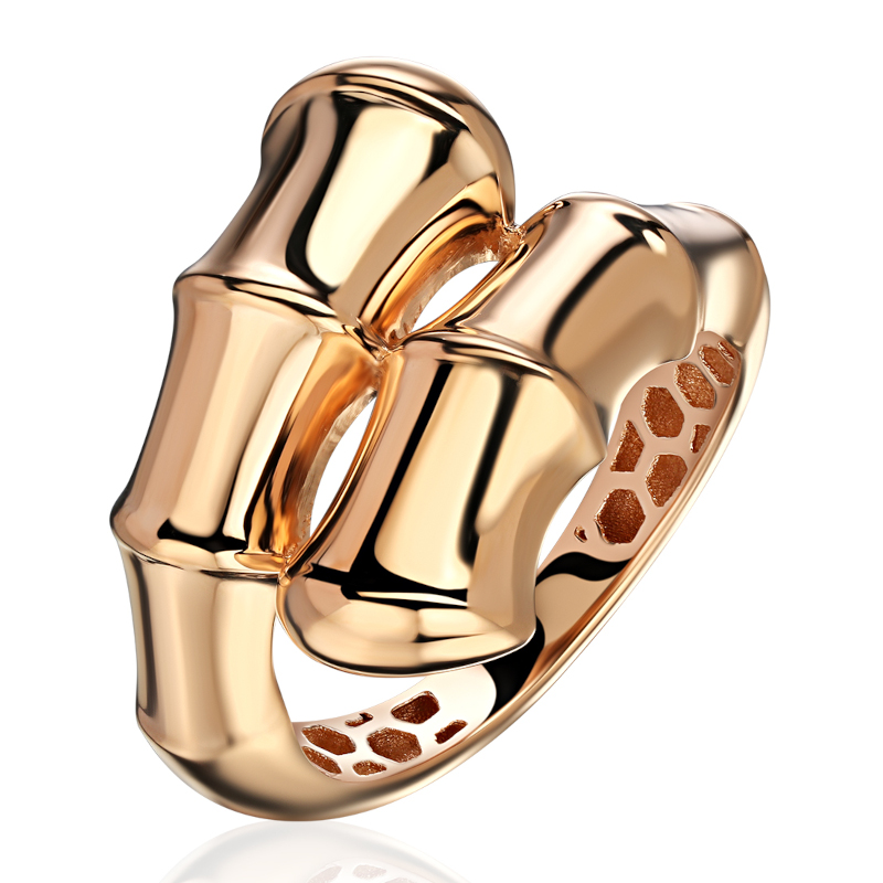 Кольцо из красного золота 585 пробы без вставок из коллекции "БЕЗЕ" выполнено в современном стиле с акцентом на объем и стиль.