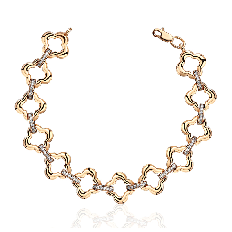 Браслет из красного золота 585 пробы с фианитами 01Б113609Р