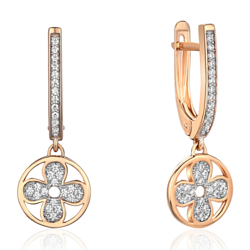 Серьги из красного золота 585 пробы с фианитами 01С1115574Р