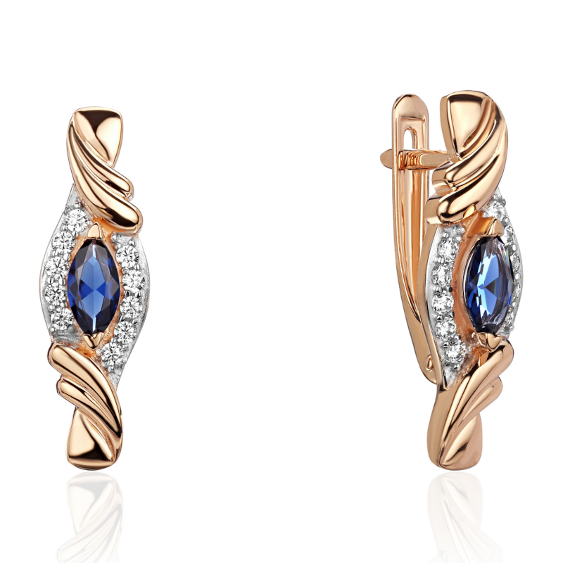 Серьги из красного золота 585 пробы с синтетической шпинелью и фианитами 01С2115368Р-1