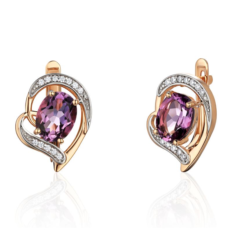 Серьги из красного золота 585 пробы с аметистами и фианитами 01С3115510Р-2