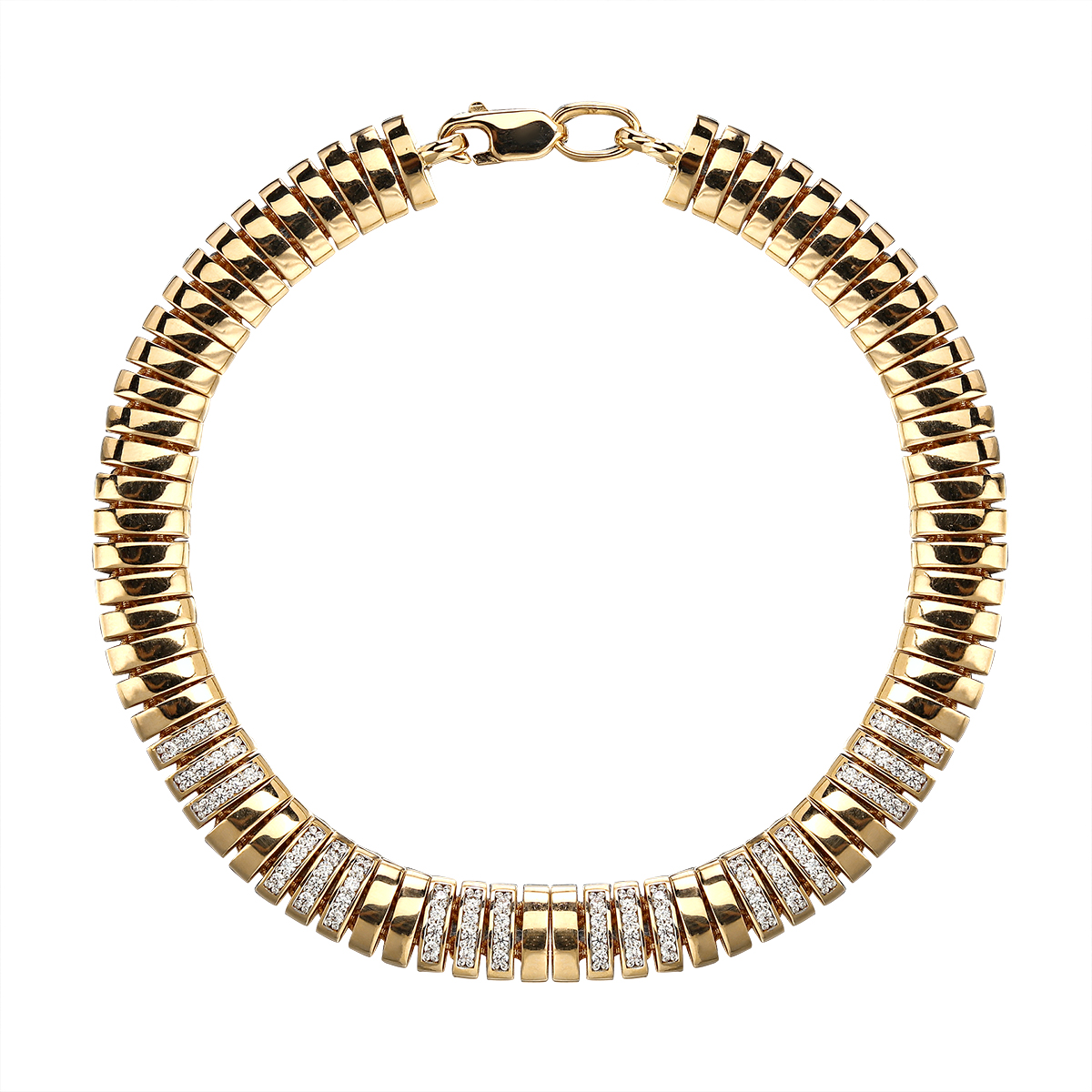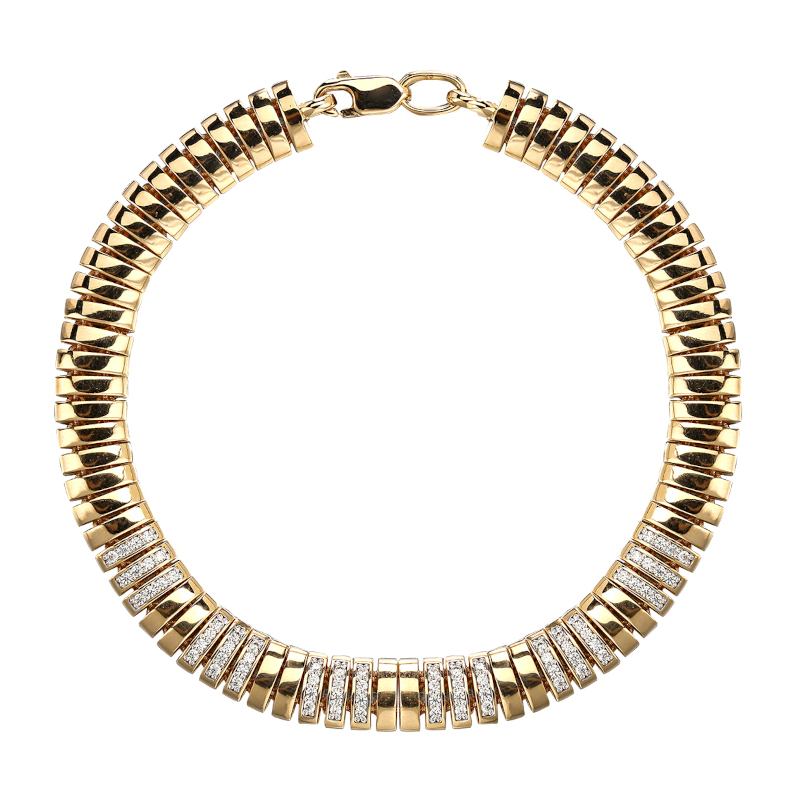 Изящный браслет из желтого золота 585 пробы, украшенный сверкающими фианитами, станет прекрасным дополнением вашего украшения и подчеркнет индивидуальный стиль. Каждое изделие изготовлено с вниманием к деталям и высоким качеством, что гарантирует его долговечность и привлекательный внешний вид. Благодаря классической элегантной стилистике, этот браслет идеально подойдет как для повседневного ношения, так и для особых случаев.